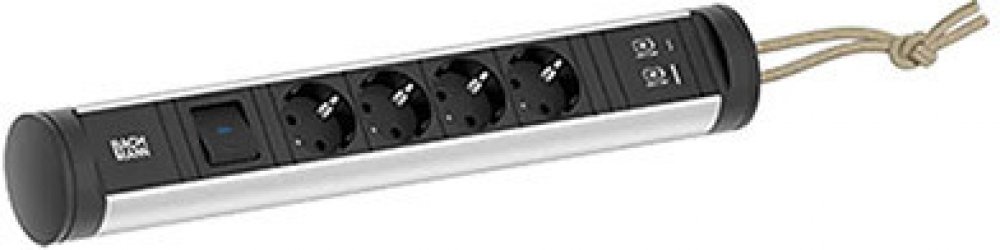 Horizontální napájecí lišta pro zavěšení se 4x zásuvkami DE, vypínačem, a zdrojem 22W (USB A + USB C).