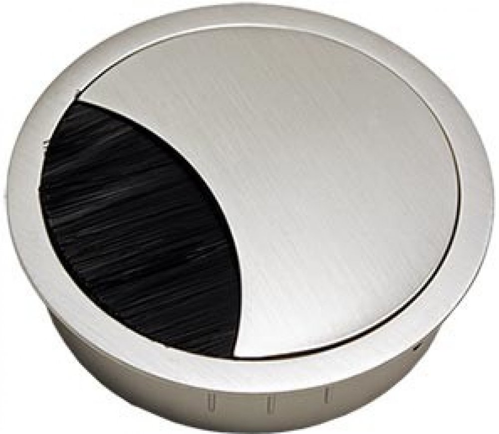Použití: Elegantní průchodka ze slitiny zinku a hliníku pro průchod kabeláže skrze desku stolu. Výřez v krytu krytky krytý kartáčem zabraňuje zapadávání drobných předmětů pod stůl.;