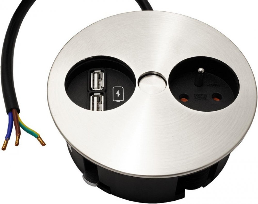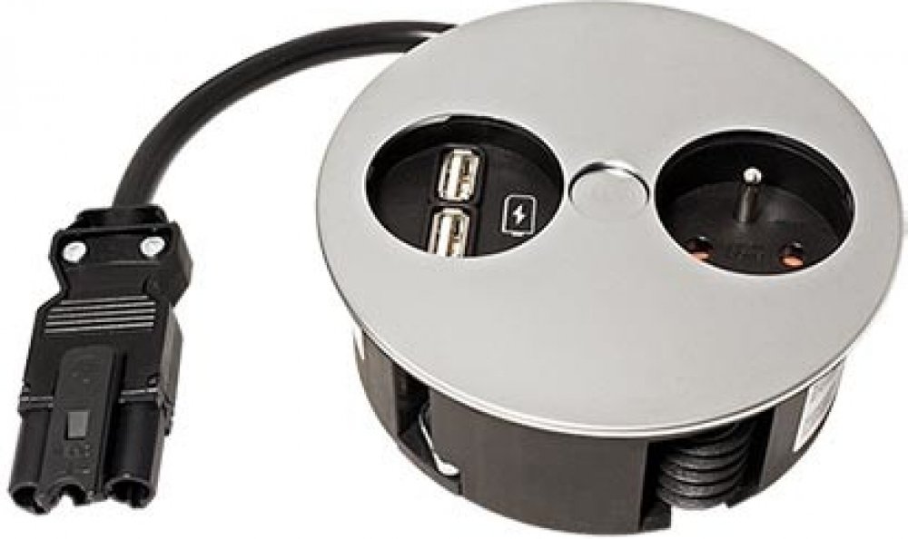 ParametrPopisPoužitíBox s napájecí zásuvkou 230V a 2 USB porty 5V/3,1A, určený pro montáž do desky stolu.Konektory1x zásuvka typ E + 2x USB A(F) - nezapojený kabel (vidlice typ E/F v balení)Kabel3x 1,5mm2, H05VV-FVýstupní napětínabíječka 5VZatíženínabíječka 3,1A (oba porty dohromady)Vlastnosti- uchycení v otvo...