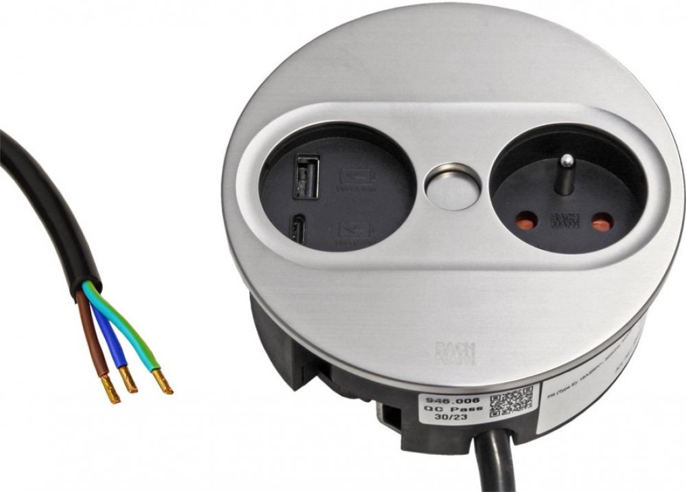 1x zásuvka 230V + USB A/C 22W + 2m napájecí kabel, samostatně přiložená kabelová vidlice.