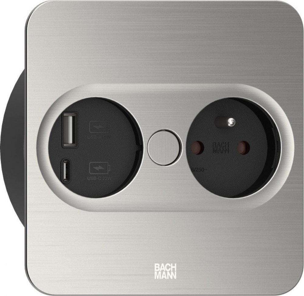 Zásuvka Bachmann Twist 2 - 946.007 s USB A+C nab. hranatá nerez