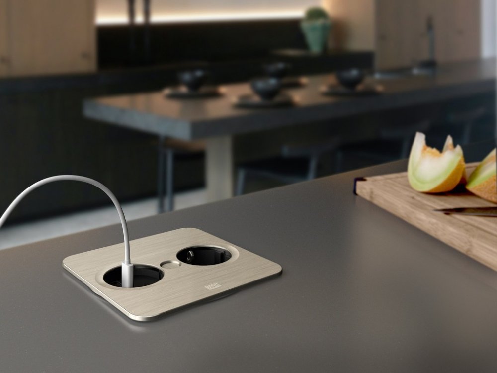 Vestavná zásuvka do nábytku, především do kuchyně a pro pracovní stoly, ale lze ji použít v jakémkoliv nábytku. Pro svou malou vestavnou hloubku 40 mm lze použít zásuvka i nad šuplíky v kuchyni. TWIST 2 je určená pro tloušťku desky od 6 mm až po 40 mm a do otvoru o pr. 105 mm (děrovky pro tento otvor máme také v nabídce vit související zboží).