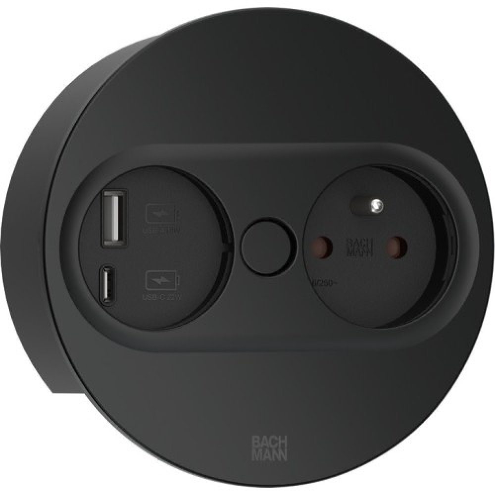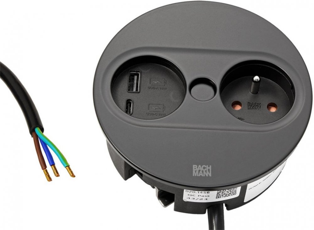 ParametrPopisPoužitíBox s jednou napájecí zásuvkou a nabíjecími porty, určený pro montáž do desky stolu.Typ946.206KonektoryVýstupy na boxu: