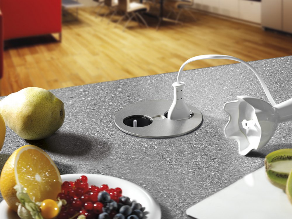 Zápustná elektro zásuvka Bachmann Twist nerez 931.002 je otočný zásuvkový modul pro kancelář, kuchyň nebo obývací pokoj. Díky svému kompaktnímu designu a nízké montážní hloubce, je prostorově úsporný při instalaci do pracovní desky stolu nebo kuchyňské desky. Přívodní kabel je vyveden tak, aby hloubka instalace byla pouze 40 mm, tím je umožněna instalace nad zásuvkami kuchyňské linky. Vrchní část je z nerezové oceli. Po stlačení středu otočneho dílu dojde k uvolnění otočné kruhu k odkrytí dvou zásuvek 230V.