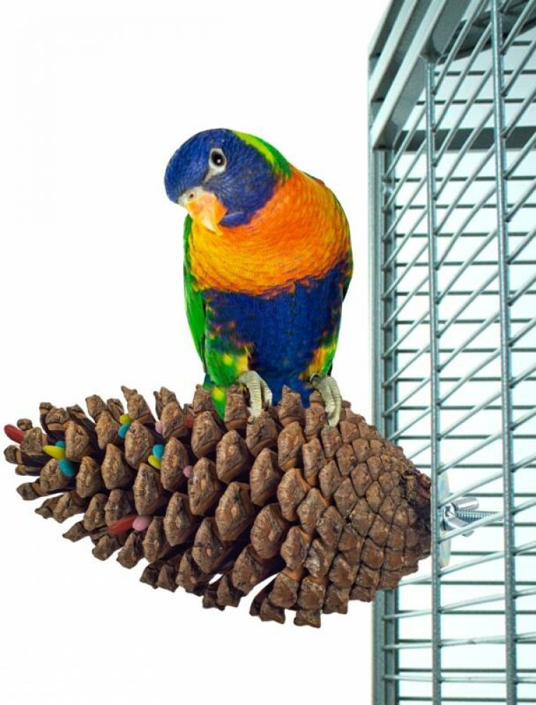 Zábava a pohyb: Robustní struktura šišky nabízí dostatek prostoru pro šplhání, cloumání a balancování, což posiluje svaly vašeho papouška.