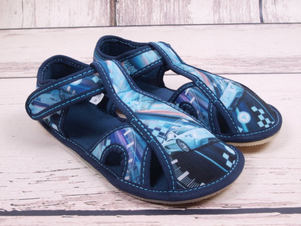 Bačkory papuče Barefoot EF 386 Speedy s autem modré otevřené