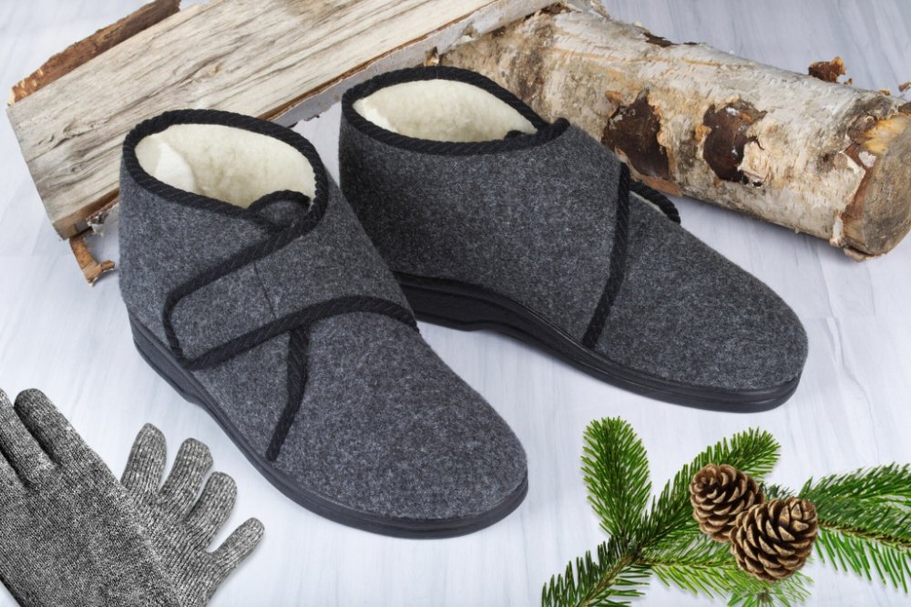 Velmi lehké a teplé nízké pánské bačkory v přírodní tmavě šedé až černé barvě. Tato obuv je zcela vyplněna přírodní ovčí vlnou, na boku zapínání na suchý zip. Velkou výhodou je velmi široký vstupní otvor pro nohu, což výrazně usnadňuje jejich nazouvání. Polstrování pro každou průměrnou výšku a šířku chodidla. Rovněž zapínání na suchý zip usnadňuje zapínání obuvi. Spodní strana je vyrobena z lehkéh...