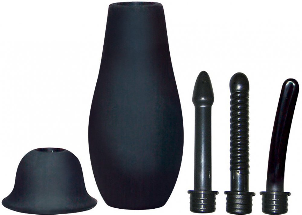 Sada na intimní hygienu se 3 různými nástavci. Můžete jej použít análně i vaginálně dle vašich potřeb. Klystýr se skládá z nafukovacího balónku o objemu 150 ml. Ten stačí napustit vodou a přidat jeden ze tří nástavců. Jeden je hladký a zahnutý, druhý má úzkou špičku a třetí má vroubky na povrchu. Každý z nich vás bude jinak dráždit. Klystýr je vyroben z kvalitního ABS materiálu v černém lesklém pr...