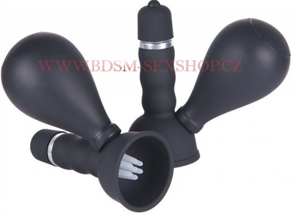 Přísavky na bradavky Bad Kitty s ručním čerpadlem pro vytvoření vakua. Vibrační tělíska s 1 úrovní vibrací. Jakmile je vytvořen podtlak a čerpací zařízení je odstraněno, zůstanou přísavky upevněna na prsou.