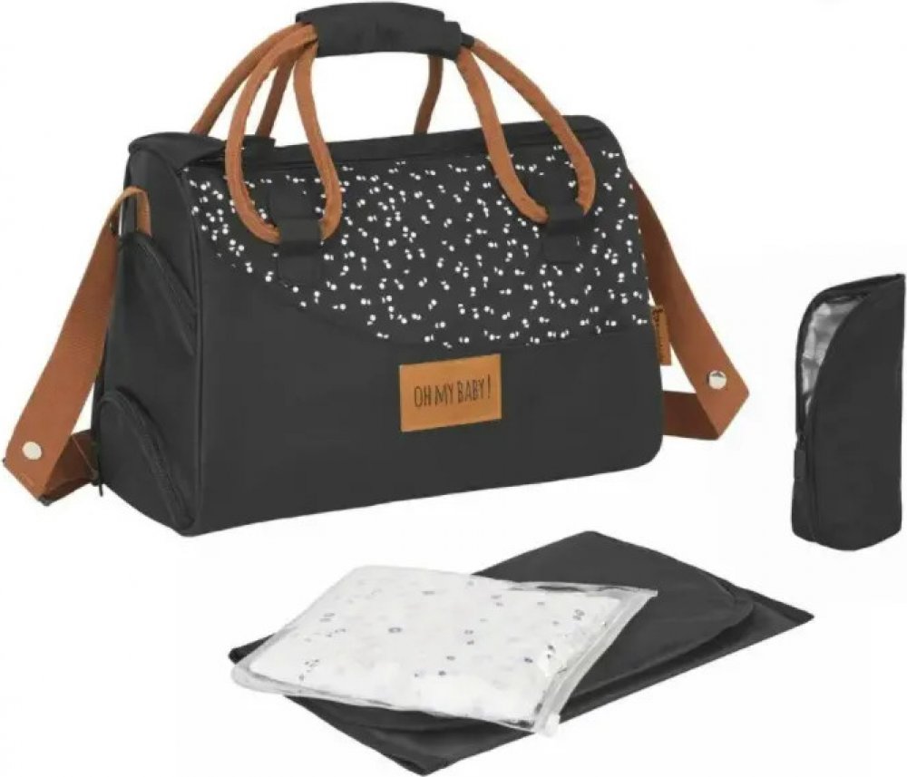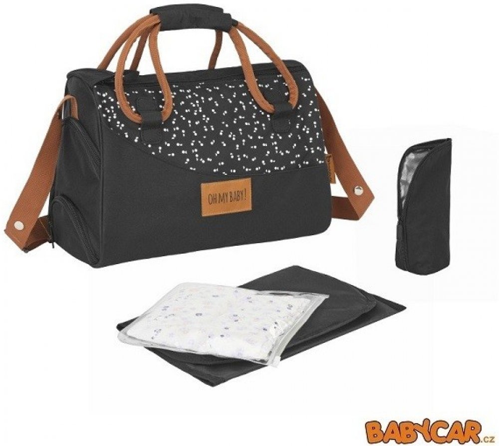 Součástí tašky je také příslušenství příslušenstv - měkká, snadno omyvatelná přebalovací podložka, termoobal, plastové pouzdro a pásky pro uchycení na kočárek.