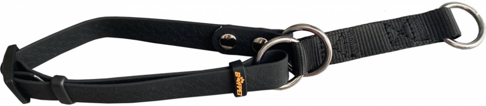 B&F Obojek stahovací POLYTRACE je popruhový stahovací obojek se speciální povrchovou úpravou, který je odolný vůči vodě a přitom je velmi měkký a příjemný do ruky. Převléká se přes hlavu, velikost lze nastavit dle potřeby.