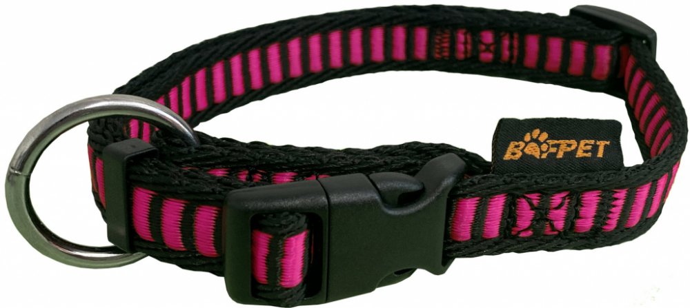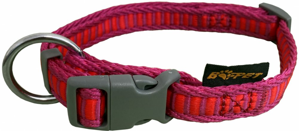 Obojky jsou vyrobeny z velmi měkkého a příjemného popruhu s vetkaným vzorem žebříku. Zapínání na plastovou přezku, snadno nastavitelný obvod. Obojek je vhodný pro malá, střední a velká plemena. PŘED ZAPNUTÍM PROVLÉKNEME PŘEZKU KROUŽKEM. Pokud ji neprovlékneme, dochází tak ke kroucení obojku.