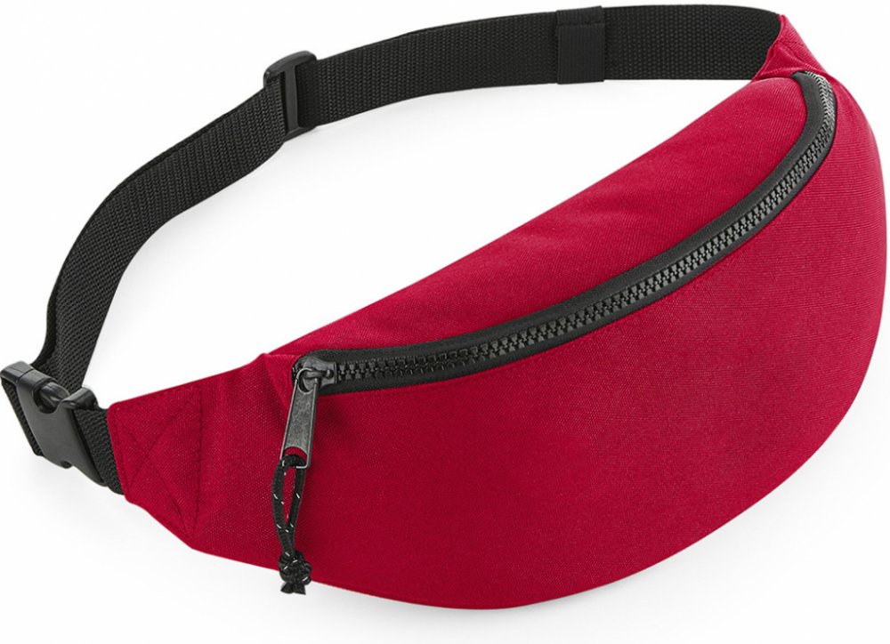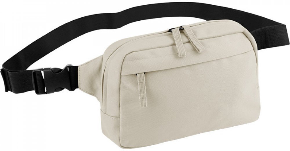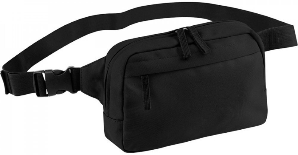 Nastavitelný bederní popruh, přední kapsa na zip, hlavní přihrádka s 2-cestným zipem, štítek TearAway, objem 2l, rozměry: 23x15x6cm