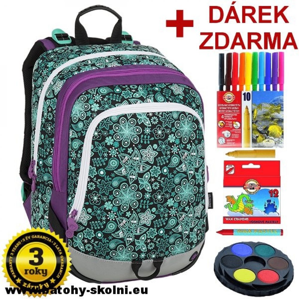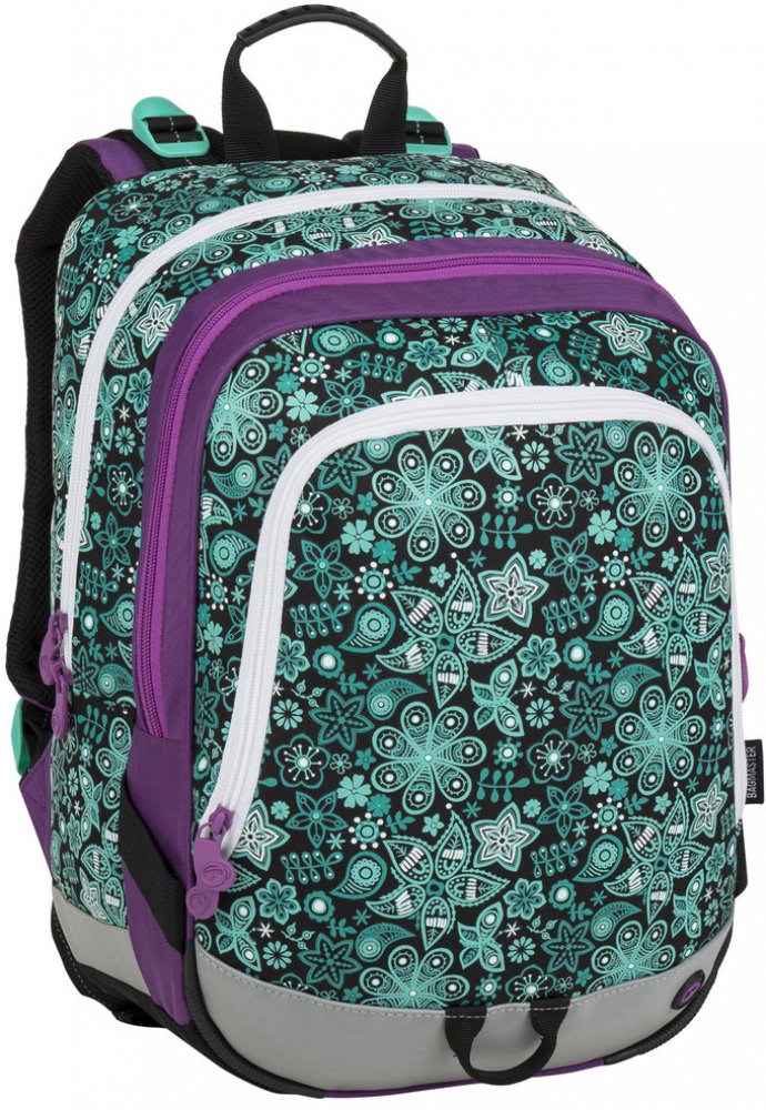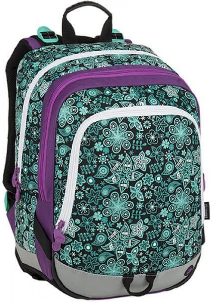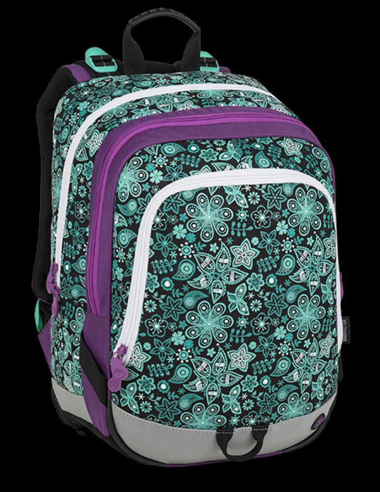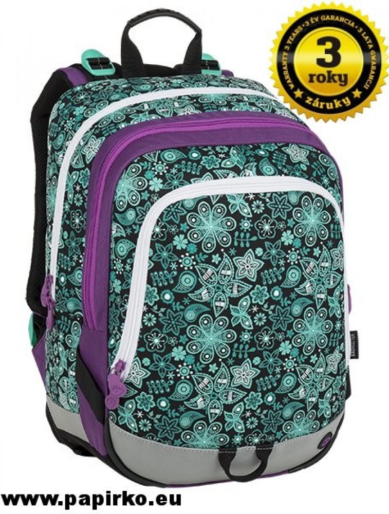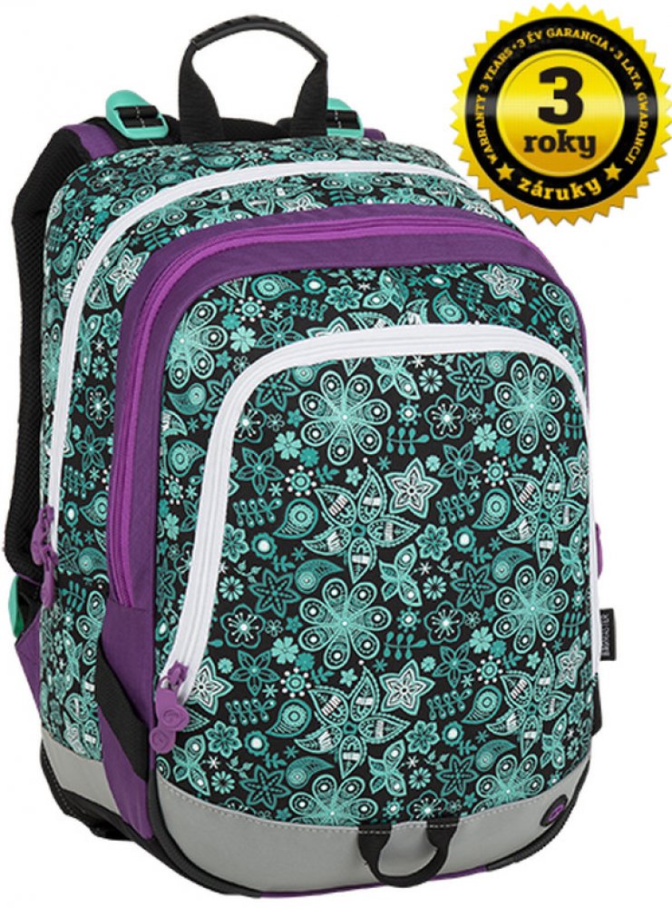 Tříkomorový školní batoh pro holčičky do první třídy s motivem květinek. Polstrovaný zádový systém se zdravotním posudkem. Prostorný batoh s organizérem. Klip na klíče. Polstrované dno. Plastové nožky. Reflexní prvky. Hmotnost 0,92 kg.