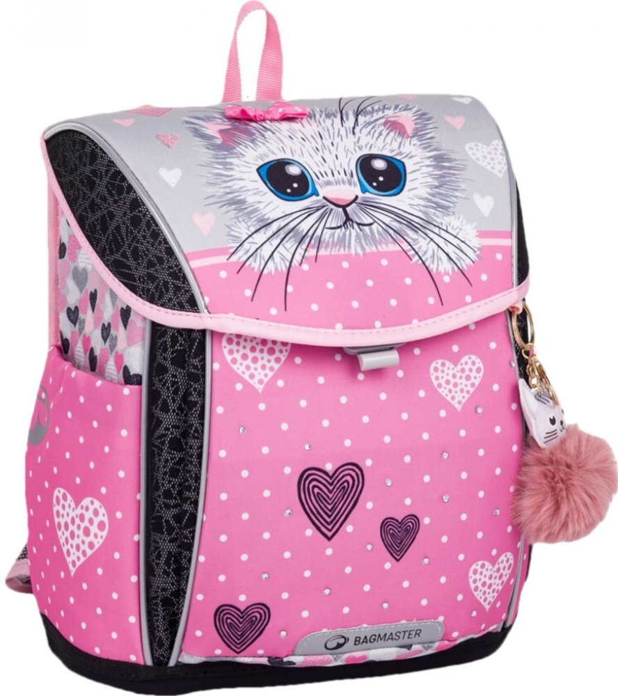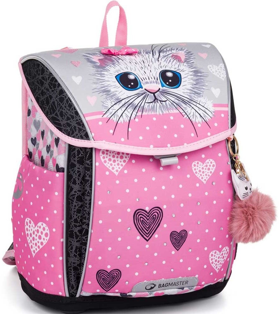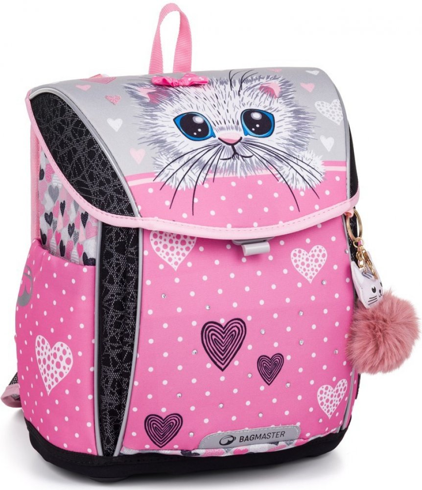 Školní aktovka pro prvňáčky Bagmaster PRIM 23 A kočka, s vyjímatelným bederním pásem.