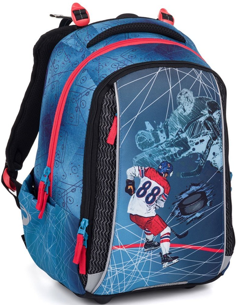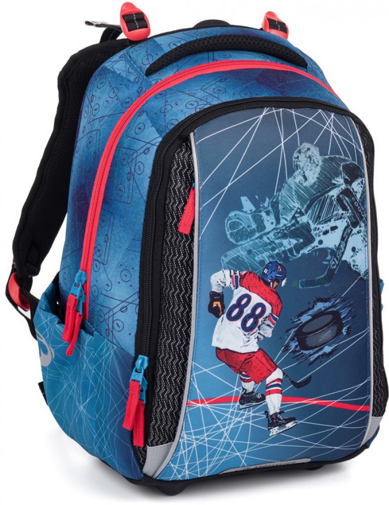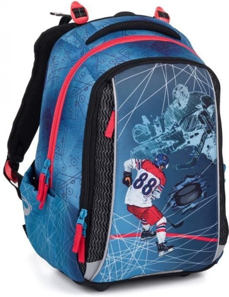 Vítězství na ledě, styl v srdci – batoh pro děti od 1. do 3. třídy, se kterým se školák bude cítit jako opravdový hrdina. Kromě krásného hokejového motivu má dostatek úložného prostoru. Má ergonomicky tvarovaný zádový systém a díky hrudnímu a bedernímu pásu nezatěžuje krční páteř. Součástí školního batohu s ledním hokejem jsou přední a boční reflexní prvky.