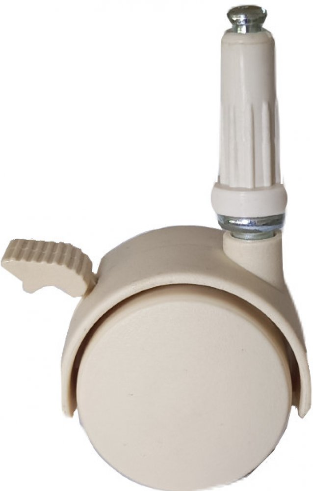 Kolečko o průměru 40 mm s brzdou, s čepem 8 mm pro zasunutí do plastového insertu (nutné předvrtání otvoru). Vhodné zejména pro kontejnery, menší kusy nábytku – jako jsou drobné skříňky či komody.