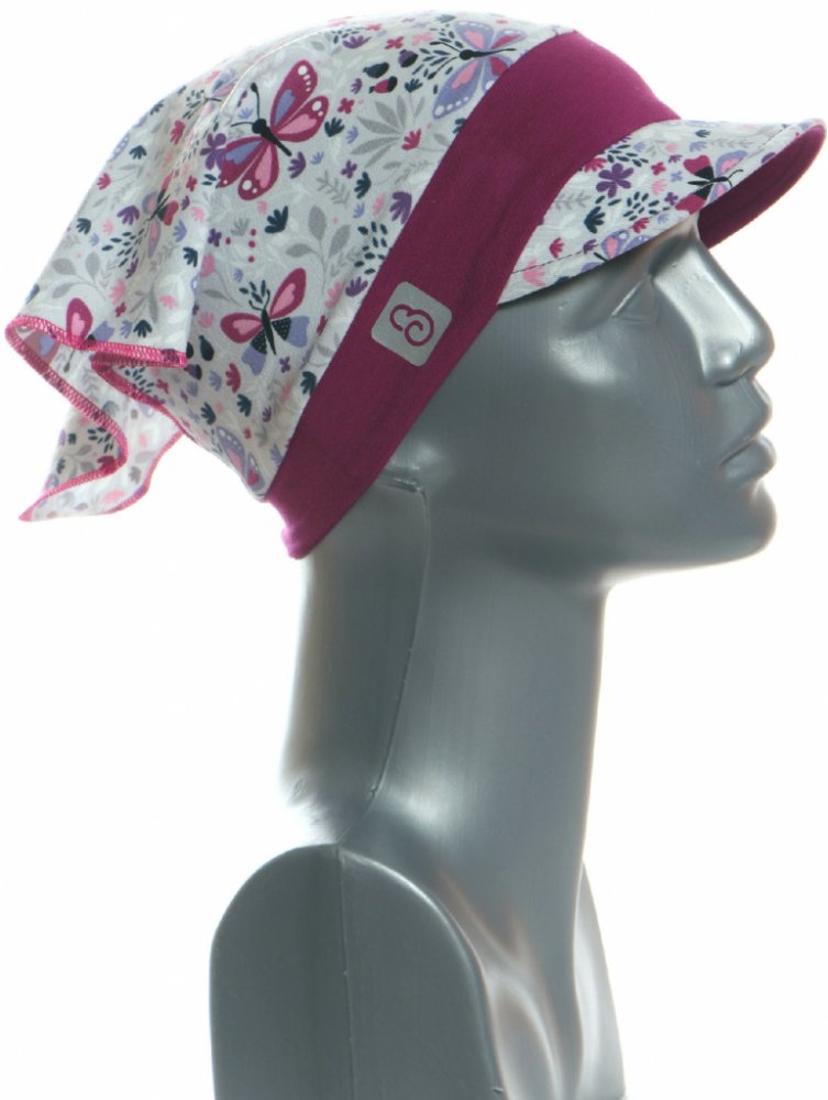 BajaDesign dívčí šátek s kšiltem motýlci na šedé + ostružinová