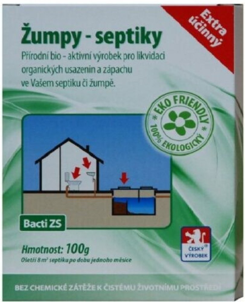Bacti ZS je prostředek určený pro rozklad organických nečistot, usazenin a kalů v žumpách a septicích. Působením bakterií a jimi tvořených enzymů dochází ke zkapalnění pevného organického odpadu, který se změní v nezapáchající kapalinu. Kapalinu lze posléze bez problémů čerpat, nedochází k ucpávání kanalizace ani případných trativodů. Pravidelným používáním tak odpadá časté a nákladné vyvážení a čištění septiku nebo žumpy, neboť dříve se tvořící krusty a usazeniny snižovaly využitelný obsah žumpy nebo septiku a vývoz tudíž musel být mnohem častější. Veškerý organický odpad se rozkládá zejména na vodu a CO2.