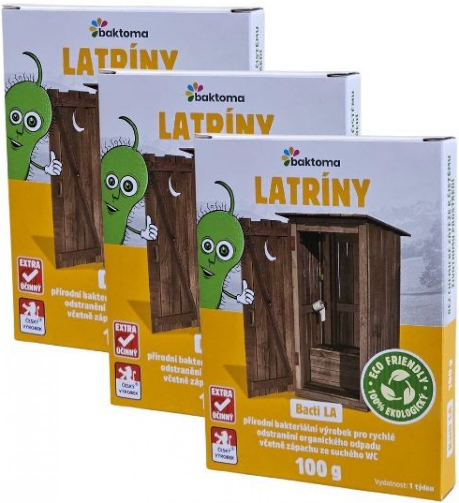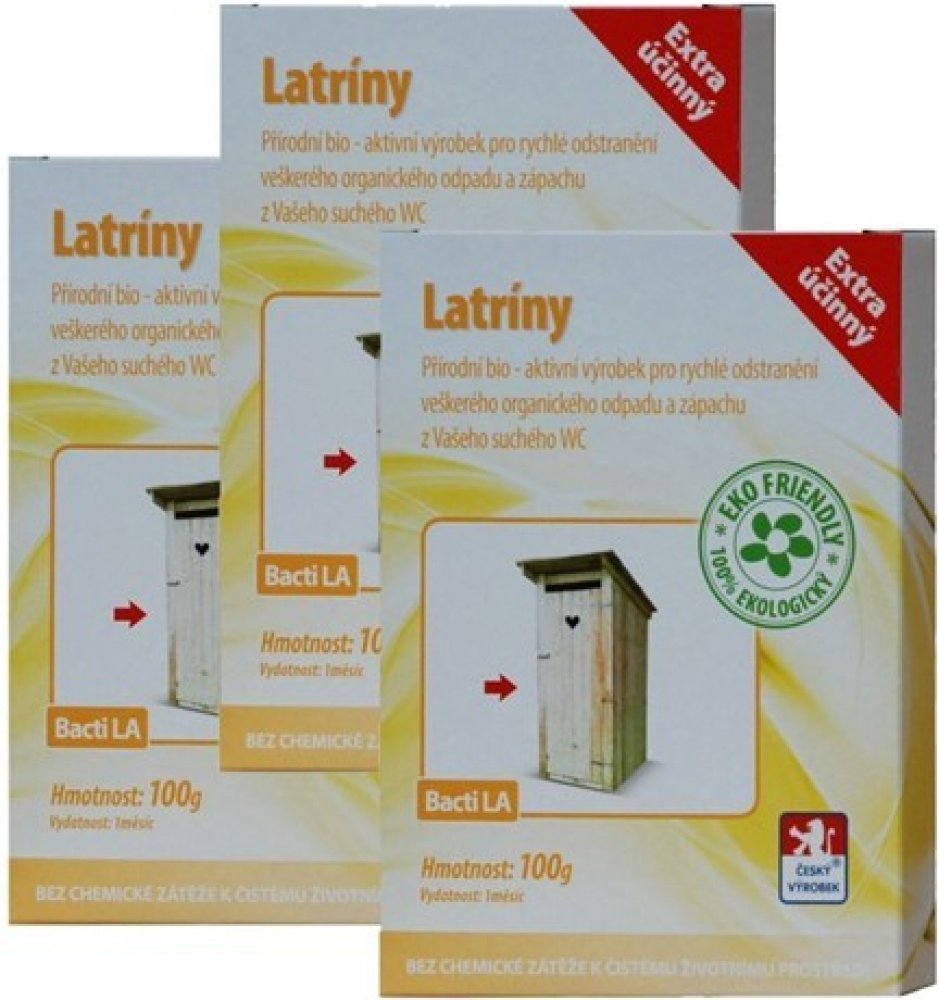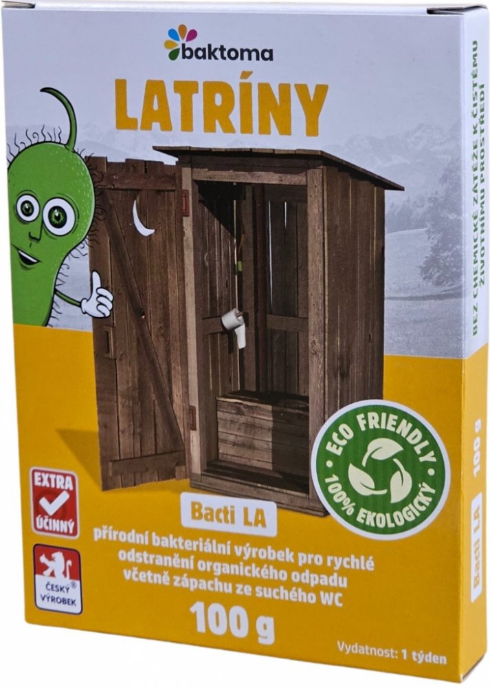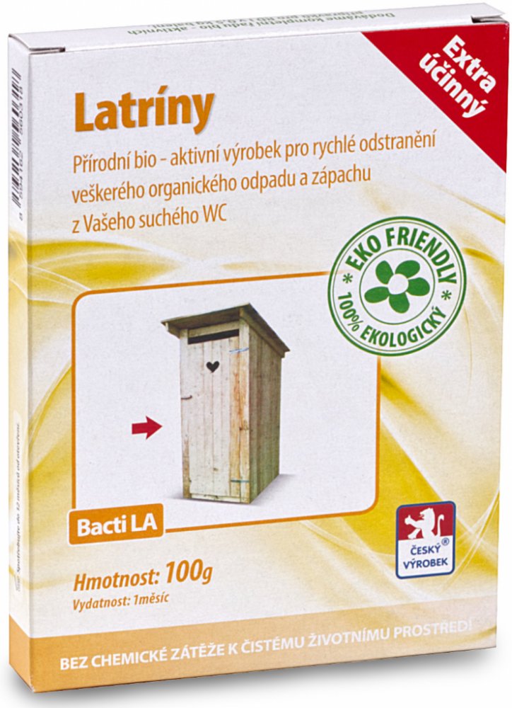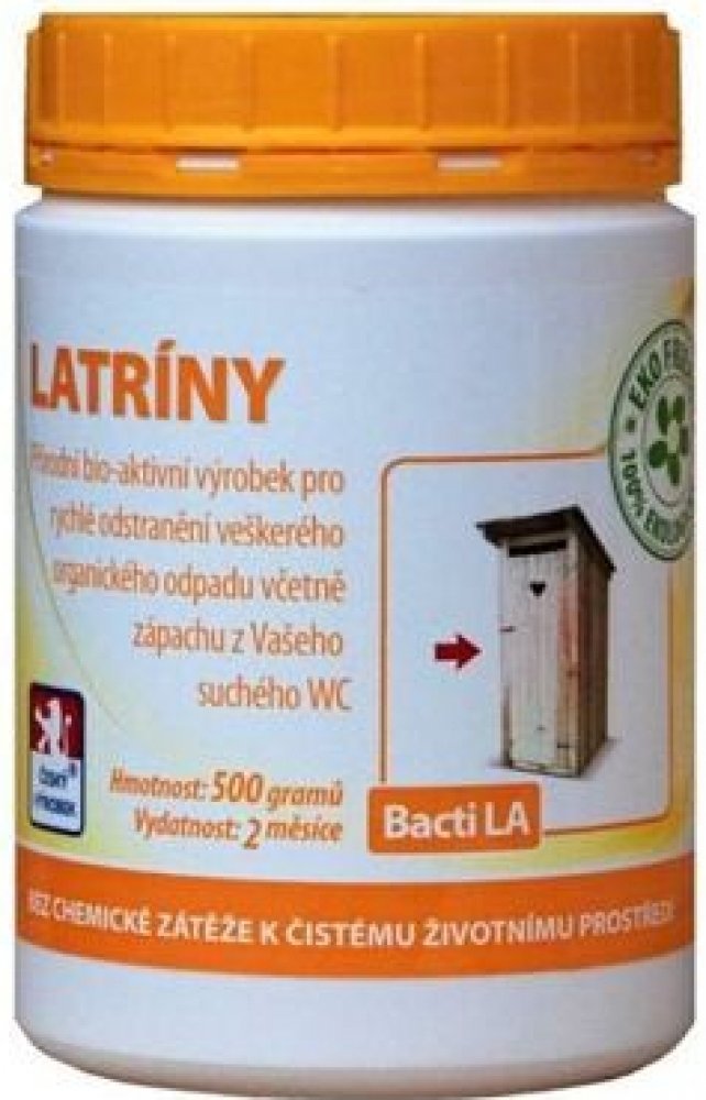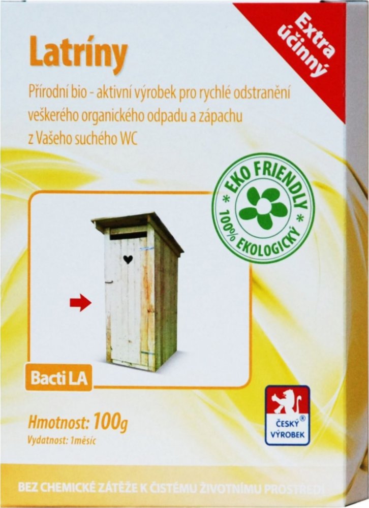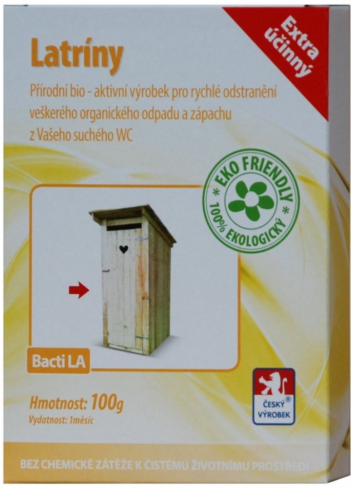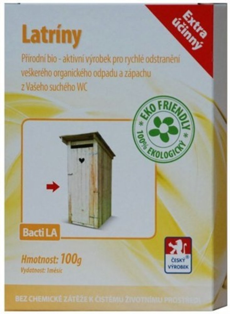 Výrobek Bacti LA obsahuje pouze volně se v přírodě vyskytující bakterie a enzymy, které nastartují biodegradační proces (přestanou se vytvářet usazeniny a krusty), čímž se optimalizuje bakteriální účinnost v latrínách a ostatních suchých WC.