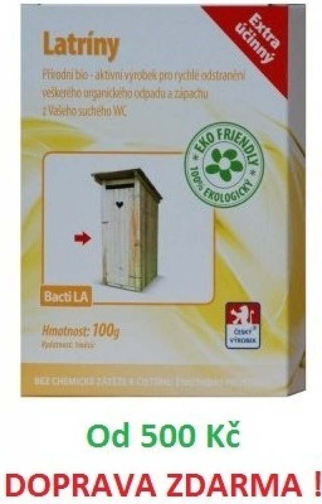 Přírodní bakteriální prostředek pro rychlé odstranění veškerého organického odpadu a zápachu z Vaší latríny nebo suchého WC.