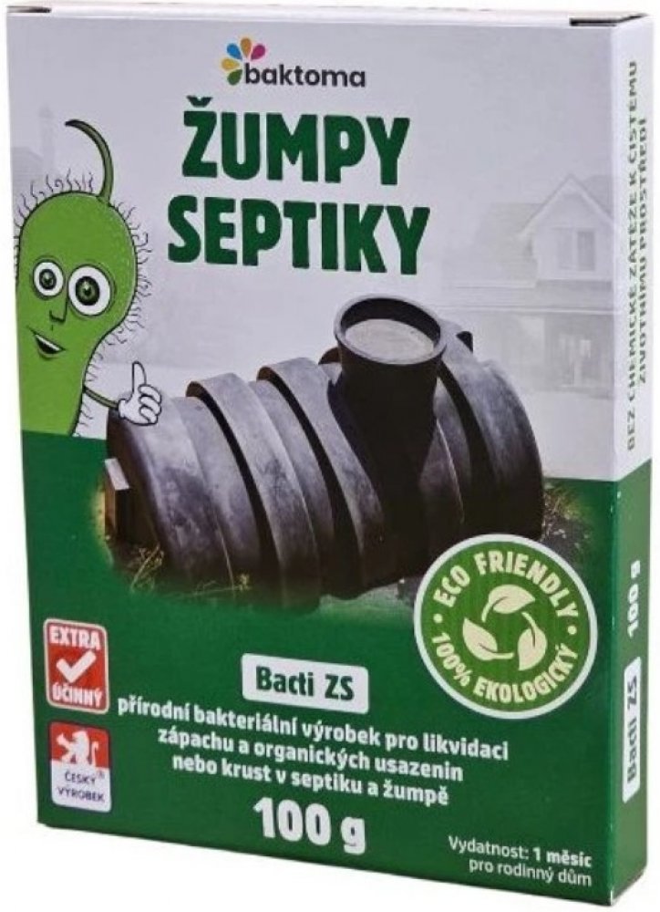 Bacti ZS je prostředek určený pro rozklad organických nečistot, usazenin a kalů v žumpách a septicích.
