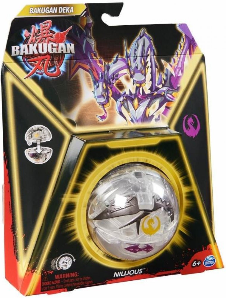 Užijte si svou oblíbenou hračku Bakugan ve větší velikosti. Vytvářejte různé kombinace a bojujte, abyste uvolnili sílu Deka Bakuganů, větších verzí nových oblíbených postaviček Bakuganů z nového seriálového hitu (nyní na NETFLIXU)! Prostě nasaďte horní část postavy na její spodní polovinu a připravte se vyslat je do akce. Bakugana můžete převalit na kartu brány a sledovat jeho proměnu pomocí legendárních otevíracích transformací. Bakugan přináší nové i známé postavy, úžasné detaily a nové klany Bakuganů pro úžasné vyprávění příběhů a strategické bitvy stejně jako v seriálu na NETFLIXU. Každá sada Bakugan obsahuje speciální kód, který lze použít v online hře Roblox pro nové způsoby hraní a interakce. Teď se navíc můžete vrhnout do další bitvy a využít nové možnosti hry díky Bakuganovi se speciálním útokem (prodává se samostatně). Přidejte všechny zbrusu nové hračky Bakugan včetně speciálních útoků a startovních balíčků (každý se prodává samostatně) mezi své oblíbené sběratelské předměty a sestavte si elitní tým. Použijte Baku-tin (prodává se zvlášť) jako dokonalý úložný prostor na Bakugany, než nastane další bitva bojovníků Bakugan. Zapojte se do zábavy a dobrodružství se zbrusu novou hrou Deka Bakugan.