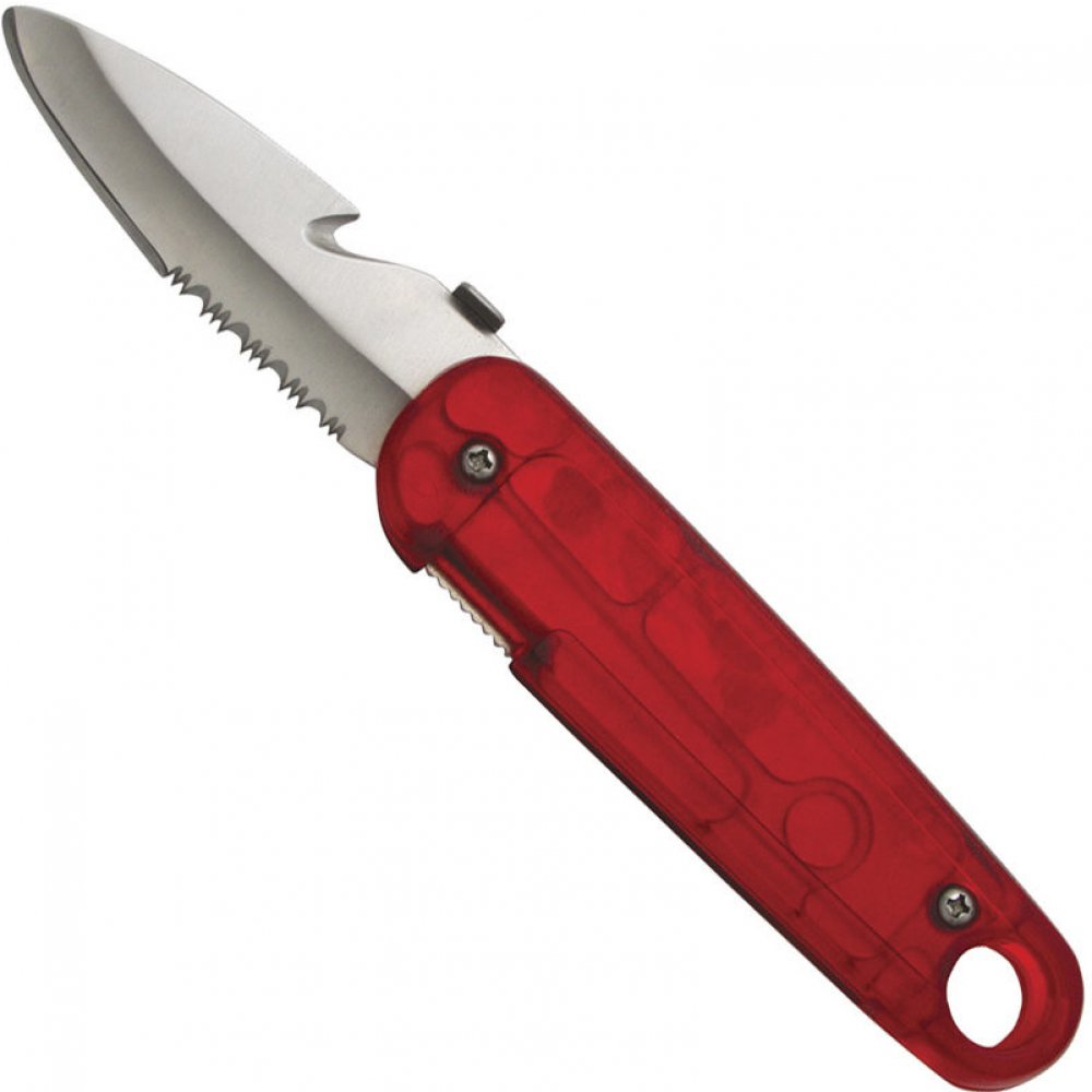 - Další výbava: zubaté ostří na řezání lana, hák na bezpečnostní pásy, otvor k zavěšení nože na karabinu