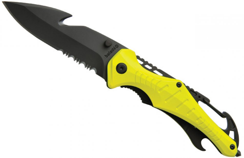 Záchranářský nůž v technickém provedení s rukojetí s reflexním zbarvením. Nůž nábízí funkce jako řezač pásů, zubaté ostří, otvírák lahví, karabina, rozbíječ skla a v neposlední řadě nůž.