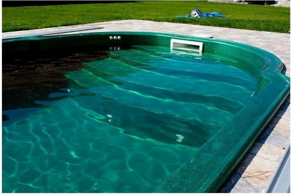 Povrch bazénu G02 Tmavě zelený povrch bazénu s výrazným perleťovým efektem. Voda bude v bazénu s tímto povrchem průzračná bez zabarvení.