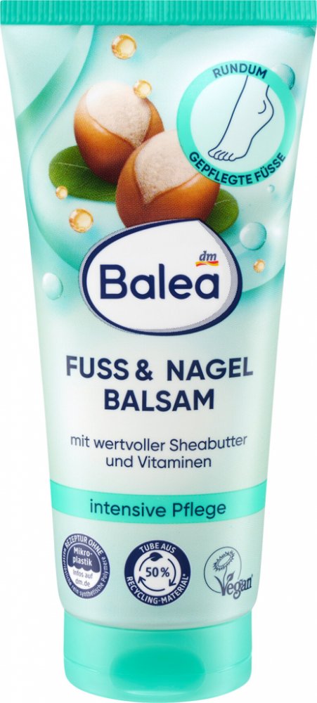 Balea balzám na nohy a nehty poskytuje cennou péči s obsahem bambuckého másla a vitaminů, které dodají intenzivní výživu nohám s častým výskytem mozolů. Zrohovatělá kůže včetně mozolů budou znatelně změkčeny, což sníží také tendenci výskytu dalších mozolů nebo ztvrdlé kůže. Obsahuje panthenol a biotin pro podporu pružnosti a stability vašich nehtů. Pro krásné a udržované nohy!