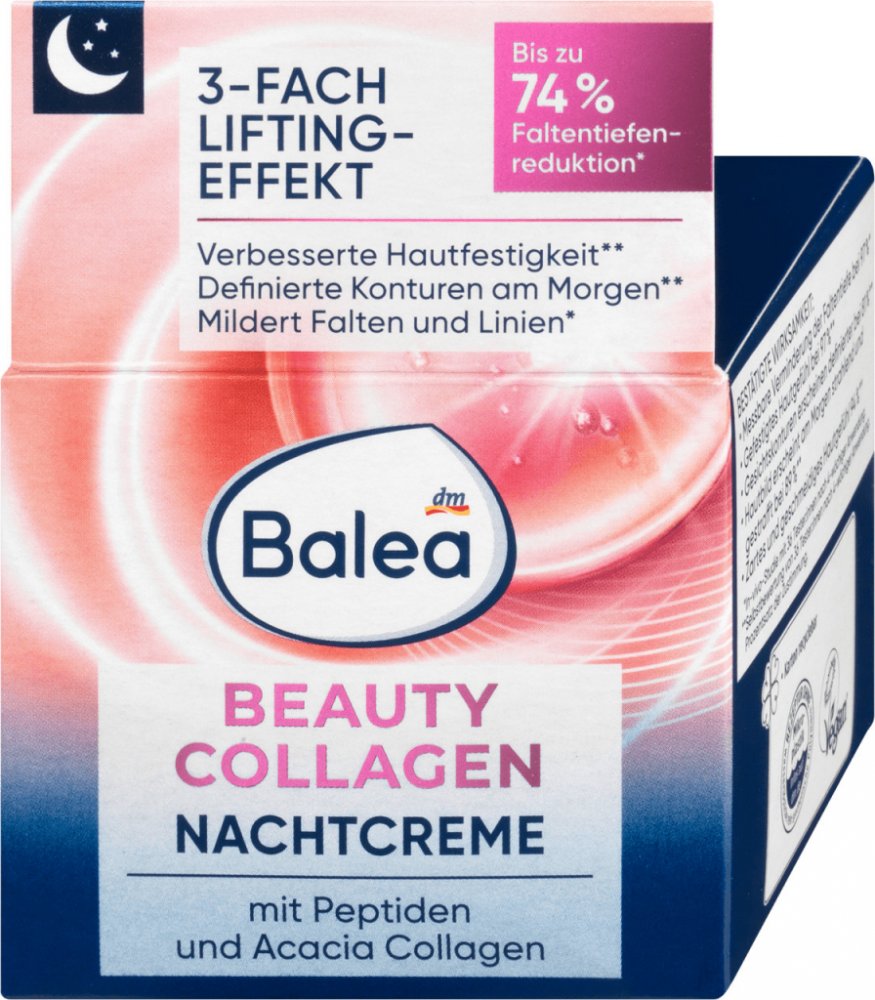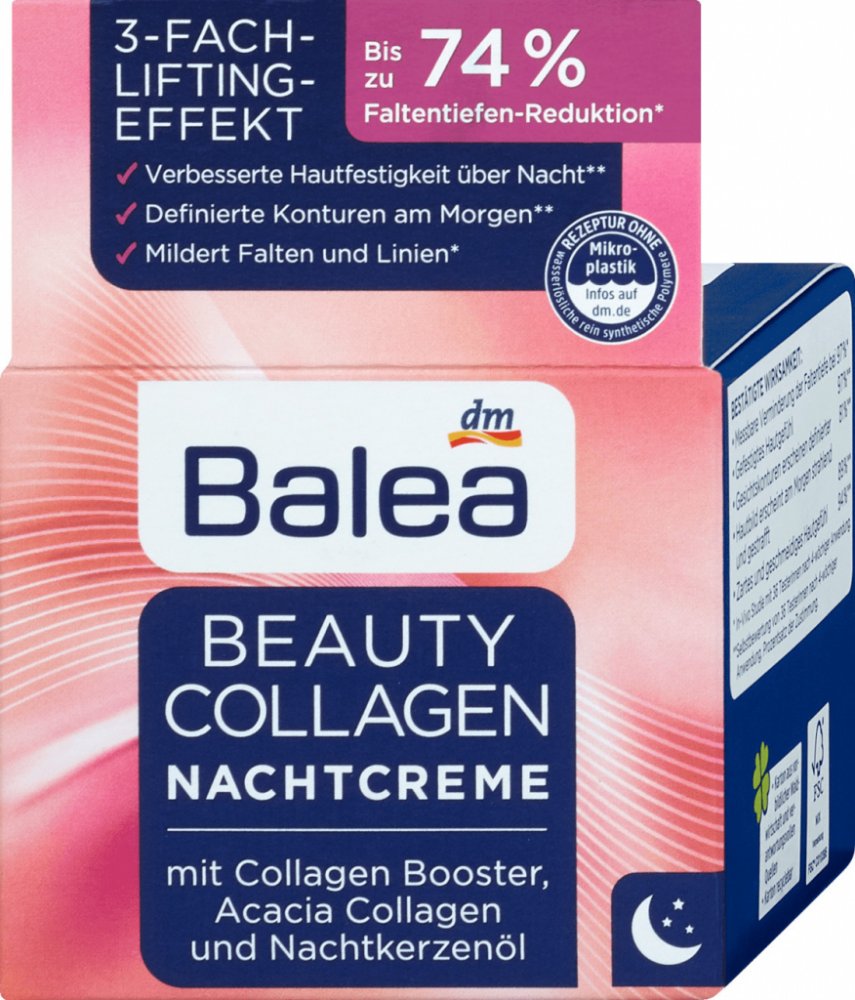 Balea Beauty Collagen noční krém s kolagenem a pupalkovým olejem napomáhá k výraznému zmírnění vrásek a zlepšení elasticity pokožky. Přírodní kolagen z akácie chrání pokožku a dodává ji dlouhotrvající hydrataci. Kolagenový booster stimuluje vlastní produkci kolagenu v pokožce, snižuje jeho přirozenou ztrátu a dodává tak pokožce mladší vzhled. Složení s pupalkovým a makadamiovým olejem vyživuje pok...