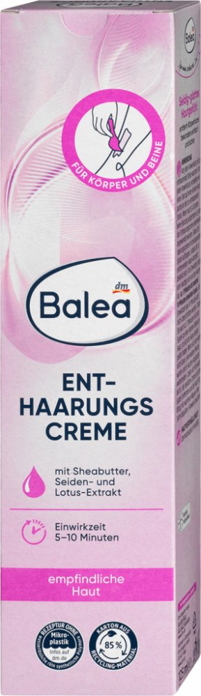 Balea depilační krém pro citlivou pokožku se slunečnicovým olejem, bambuckým máslem a výtažkem z hedvábí a lotosu odstraňuje chloupky velmi jednoduše, ale spolehlivě a zanechá tak pokožku krásně hebkou a hladkou.