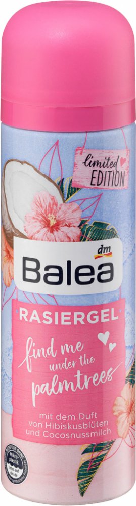 Balea gel na holení find me under the palmtress s vůní ibišku a kokosového mléka nabízí důkladné, voňavé a snadné oholení. Okouzlí vás svou láskyplně vybranou vůní ibišku a kokosového mléka a poskytne vašemu holení nový rozměr. Poskytněte své pokožce péči s nádechem letní dovolené. Receptura neobsahuje mikroplasty, ani rozpustné plně syntetické polymery.