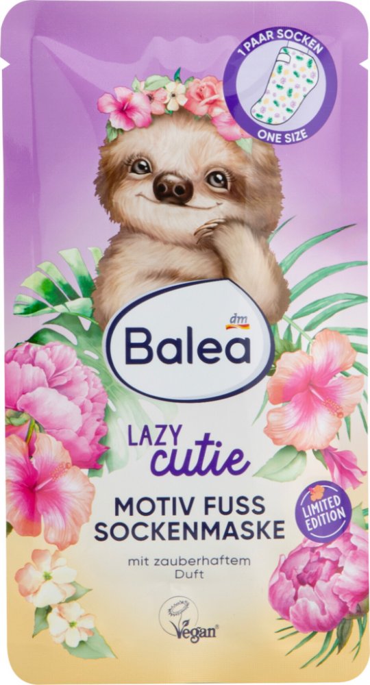 Maska na nohy Balea Lazy Cutie je ideální volbou pro intenzivní péči o nohy. Tato designová maska na nohy poskytuje bohatou hydrataci a oživuje pokožku nohou. Obohacena o panthenol a extrakt z růží a ibišku, zajišťuje hloubkovou péči a příjemný pocit na pokožce. Dopřejte svým nohám blahodárný odpočinek a zažijte jemnou, upravenou pleť. Ideální pro relaxační wellness ošetření doma.