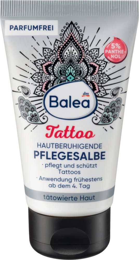 Balea mast na tetování byla speciálně vyvinuta jako výživná péče na tetovaná místa. Složení s 5% panthenolem, bambuckým máslem a mandlovým olejem poskytuje pokožce intenzivní hydrataci a podporuje regeneraci kůže. # Receptura neobsahuje mikroplasty, ani rozpustné plně syntetické polymery.