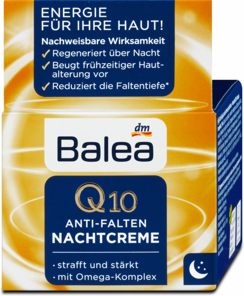 Receptura bez mikroplastů a ve vodě rozpustných, čistě syntetických polymerů Dermatologicky potvrzená péče o pleť: Balea Q10 zjemňuje první vrásky a hloubku vrásek.