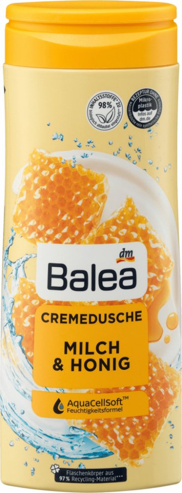 Balea krémový sprchový gel s mlékem & medem poskytuje pokožce příjemnou péči a uvolnění díky úžasné vůni. Jemná hydratační formule pokožku zvláčňuje a chrání ji před vysušením, zatímco mléčné bílkoviny chrání přirozenou rovnováhu pokožky. Sprchový gel je díky složení bez mikroplastů ideální také pro citlivou pokožku. Užijte si příjemnou péči vhodnou pro každodenní sprchování.