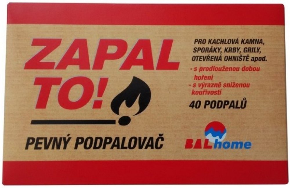 ZAPAL TO! 40 podpalů s prodlouženou dobou hoření a výrazně sníženou kouřivostí. Pevný podpalovač Zapal To je určen k podpalování uhlí, dřeva, dřevěného uhlí nebo briket. Je vhodný pro zatápění v krbech, kamnech, zahradních grilech ale i otevřených ohništích.