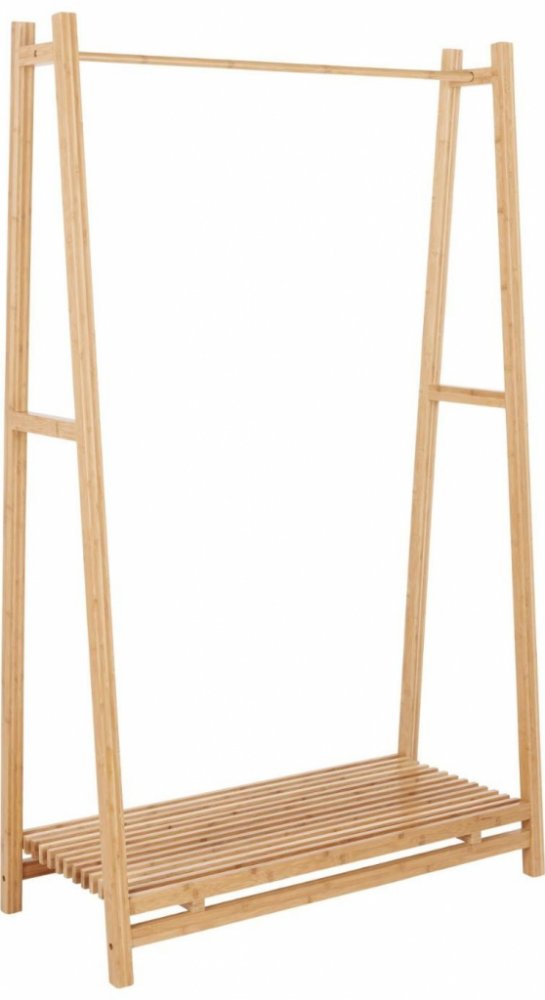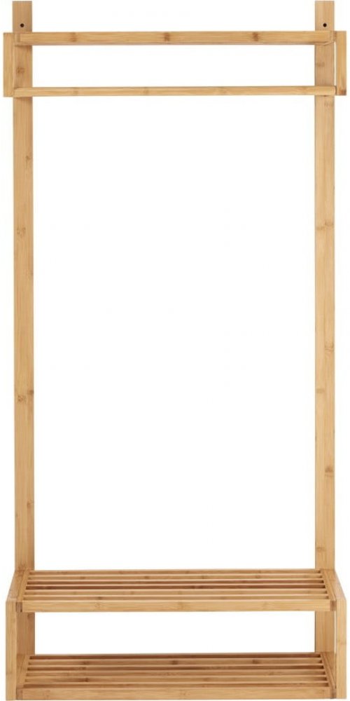 Věšák Bali je vyroben výhradně z bambusu v přírodní barvě. Má jemnou, ale stabilní konstrukci. Skládá se z dřevěné tyče, na kterou můžete zavěsit ramínka, a široké spodní police z tenkých lamel, na kterou můžete úspěšně uložit boty.