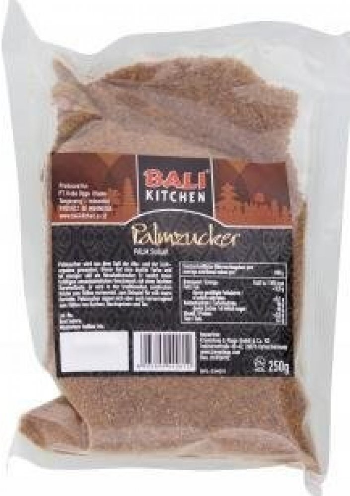 Palmový cukr - sypaný palmový cukr - Bali Kitchen 250gPalmový cukr se získává z mízy rozkvetlých palmových květů. Má karamelovou chuť a není tak sladký jako "normální" domácí cukr. Je podobný chuti hnědého cukru, ale bez mírně "kovové" pachuti. Díky nízkému bodu tání a vysokému bodu hoření je palmový cukr ideální pro cukráře. Díky své karamelové chuti je palmový cukr vhodný zejména do dezertů v kombinaci s kokosovým mlékem. Palmový cukr se používá v celé Asii, a proto má mnoho názvů: Na Filipínách je to pakaskas, v Laosu Num taan, v Thajsku Nam taan, v Barmě a Bangladéši jaggery nebo v indonéštině / malajštině gula melaka Oslaďte si jím nejen asijské pokrmy, ale také dorty, dezerty a čaj. Kreyenhop and Kluge GmbH & Co KG Industriestrasse 40-42, 28876 Oyten Bali palmový cukr v prášku tmavě hnědý Tento vysoce kvalitní palmový cukr se vyrábí z mízy palmových květů a vyznačuje se bohatou karamelovou chutí a sytou tmavou barvou. Práškový palmový cukr Bali je ideální pro přípravu asijských dezertů, nápojů nebo jako přírodní sladidlo do různých receptů a dodá vašim pokrmům komplexní a lahodnou chuť. Díky své přirozené sladkosti a plné chuti je zdravou a chutnou alternativou běžného cukru.Složení:Složení: palmový cukrInformace pro alergiky:-Čistá hmotnost/čistý obsah:250gDovozce/výrobce:Dovozce: Kreyenhop & Kluge GmbH & Co. KG, Industriestr. 40-42, 28876 Oyten, NěmeckoPožadavky na skladování/skladování:Skladujte na chladném a suchém místě.Země původu: Německo:IndonésieDatum minimální trvanlivosti:Datum výroby=datum výroby Datum výroby je vytištěno na mnoha výrobcích, nezaměňovat s datem minimální trvanlivosti. Nejméně 3 měsíce od odeslání. Obvykle déle. Na přesné datum se prosím zeptejte.Příprava:- Obecné informace:Všichni výrobci mění obaly a označení svých výrobků (nálepky) každých několik let. Může se stát, že ne vždy jsme v obraze, ale vždy je ihned aktualizujeme.Průměrné výživové údaje na 100 gKalorická hodnota1667 kJ 392 kcalTuk - z toho nasycené mastné kyseliny