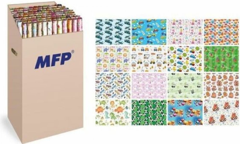 Balicí papírv roli s dětskými motivy. U dárku je velmi důležitý obsah, ale i to, aby byl krásně zabalený. Balení obsahuje 2 archy 100x70 cm. Velikost role: 200x70cm Gramáž: 80g Balení: 96 ks Vzor: různé vzory - viz obrázek Uvedená cena je za 1 ks. Všech 96 ks je baleno v kartonové krabici.