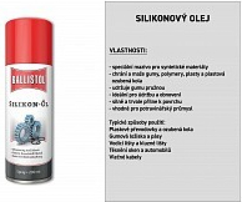 Ballistol Silikonový olej sprej 200 ml je mazivo zvlášť vhodné pro ochranu těsnění a dalších gumových povrchů a udržení jejich původní vlastností. Dodává se ve formě oleje a obdržíte jej ve spreji. Co se jeho složení týká, olej Ballistol je silikonové mazivo. Dodává skvělé lubrikační schopnosti a odolává vysokým teplotám. Balení maziva má objem 200 ml a jeho známá barva je čirá. Zásadní vlastnosti maziva Ballistol Silikonový olej sprej 200 ml Složení maziva: silikonové Mazivo je prodáváno jako olej Mazivo Ballistol jeho objem činí 200 ml Mazivo má barvu čirá Mazivo se dodává ve spreji Ballistol Silikonový olej sprej 200 ml se hodí na gumu a pryž