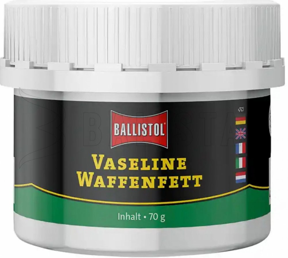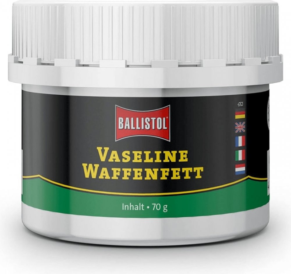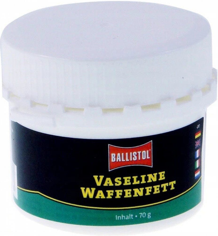 Vazelína Ballistol je vhodným doplňkem k ochraně všech kovových částí zbraně. Efektivní maže a chrání. Neobsahuje žádné pryskyřice a kyseliny. Hmotnost 70 gr.