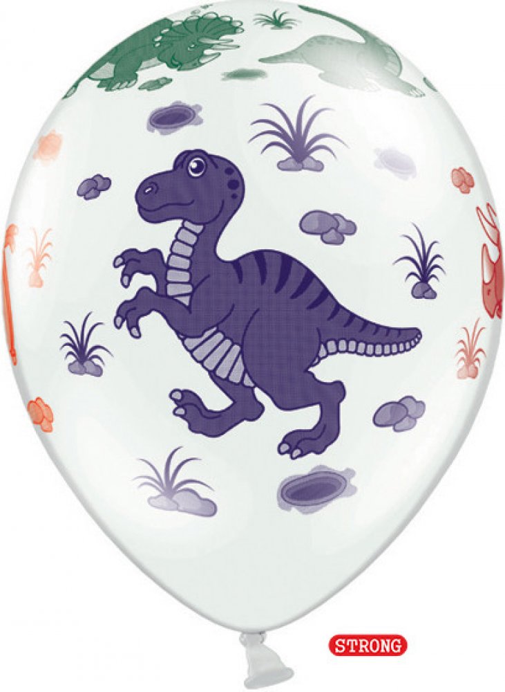 Latexový balónek v bílé barvě s barevným potiskem ve tvaru dinosaurů. Oslava se bez balónků neobejde. Je to asi nejoblíbenější narozeninová dekorace pro malé i velké. Ale nemusíte je používat jen při narozeninové oslavě nebo tématických oslavách. Použití klasických latexových balónků nezná mezí. Můžete zapojit svoji fantazii a vytvořit třeba balónkovou bránu, nebo je prostě jednoduše zavěsit do pr...