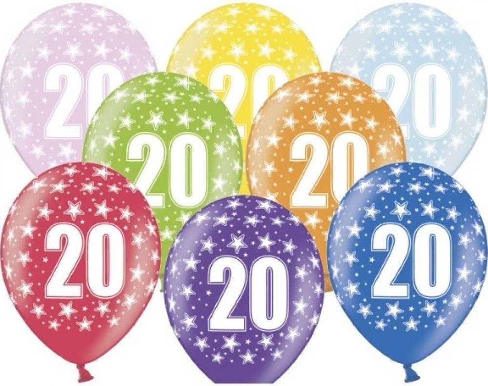 Latexový nafukovací balonek s číslem 20. Celoplošný potisk. Velikost 33 cm Dodáváno v mixu barev.