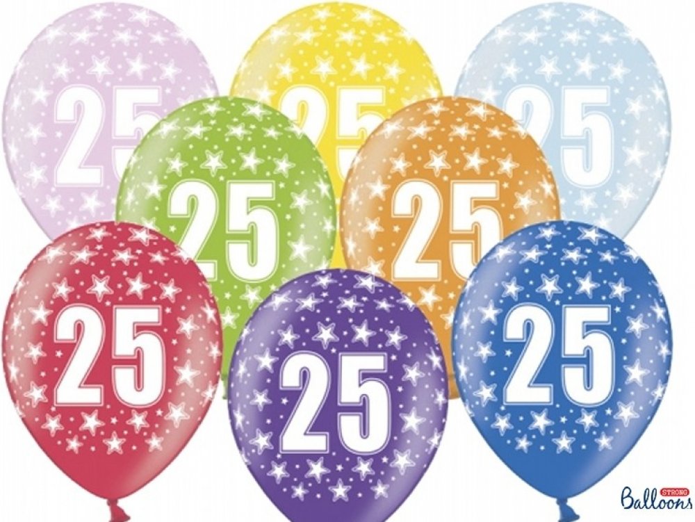 Originál balónek číslo "25" lesklé barvy, vel. 30 cm, cena za 5 ks mix barev, vhodný pro nafukování vzduchem i heliem.