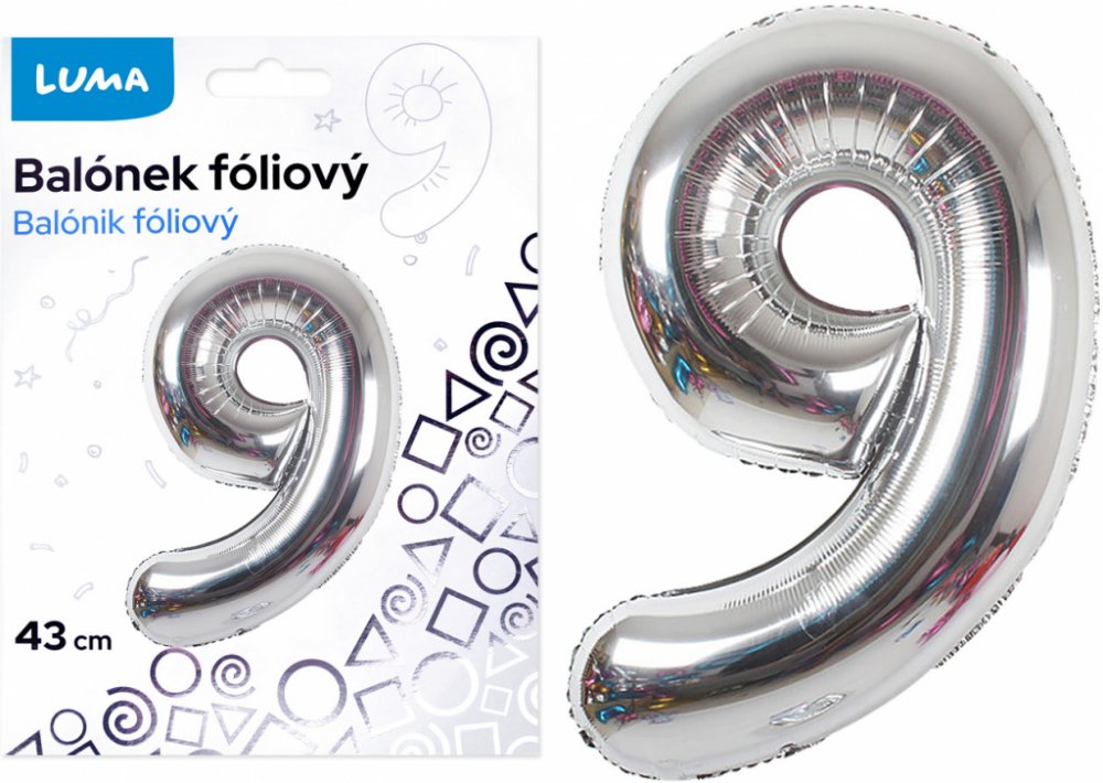Balónek foliový č. 9 STŘÍBRNÝ 43cm