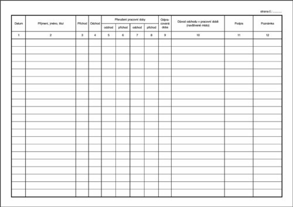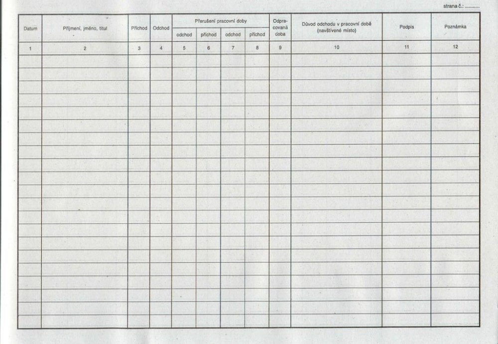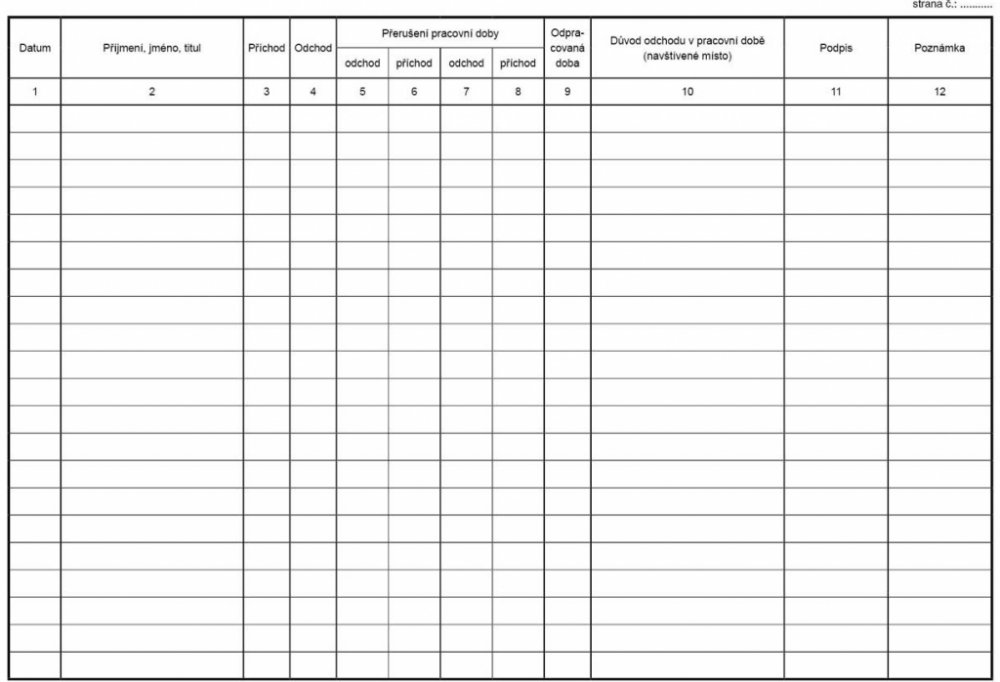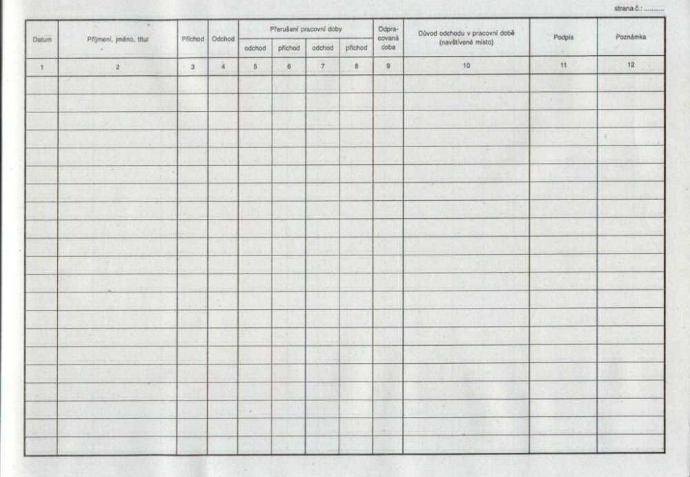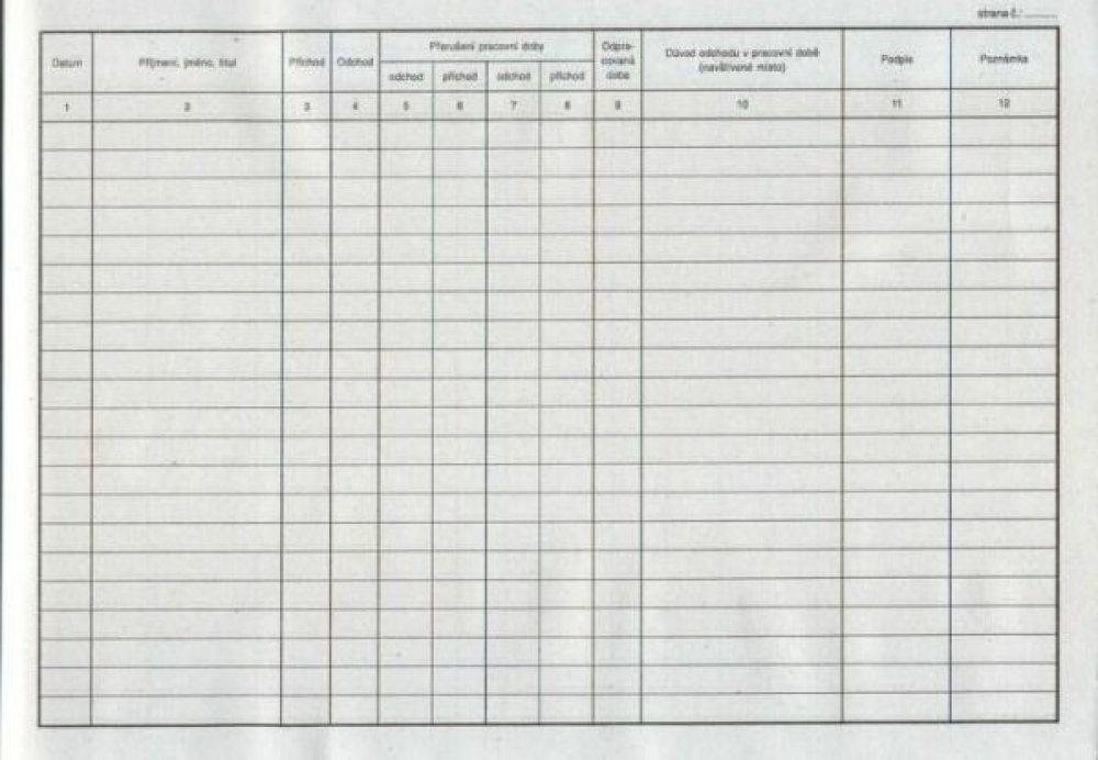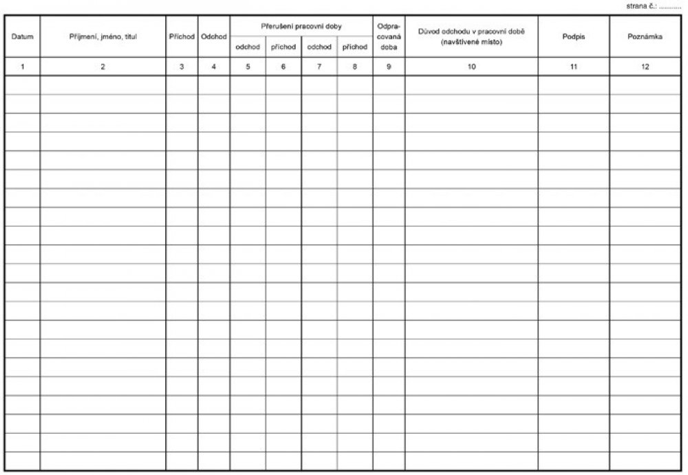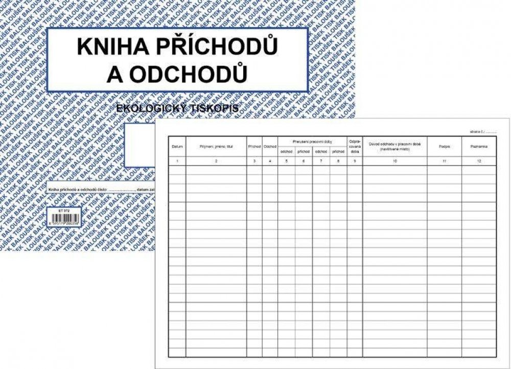 Kniha příchodů a odchodů - tiskopis z recyklovaného hlazeného papíru.