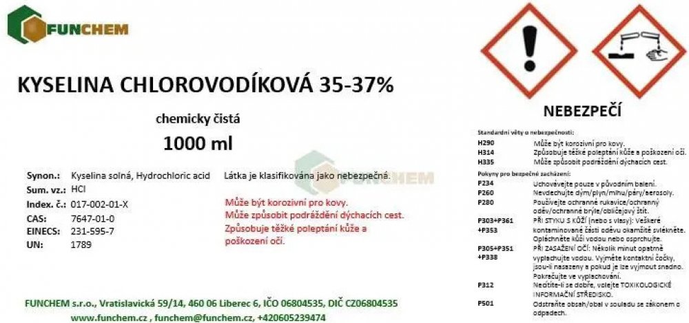 kyselina chlorovodíková (Index: 017-002-00-2; CAS: 231-595-7)